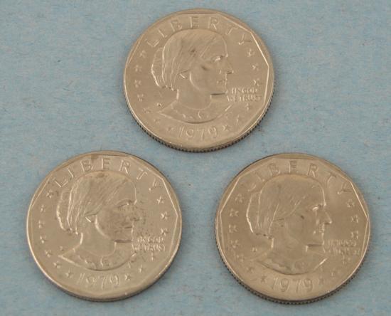 3 Diff Fill Error 1979 Susan B Anthony Dollars P D S
