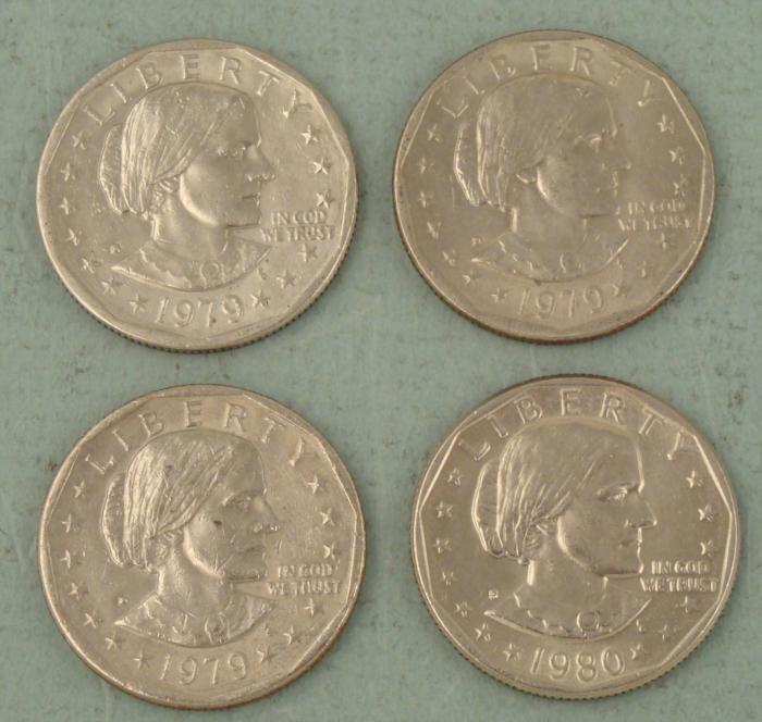 4 Diff Date Susan B Anthony Dollars Error 1979 1980