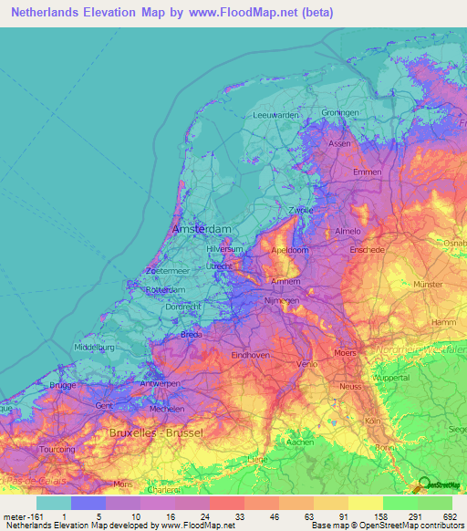 Netherlands Elevation And Elevation Maps Of Cities Topographic