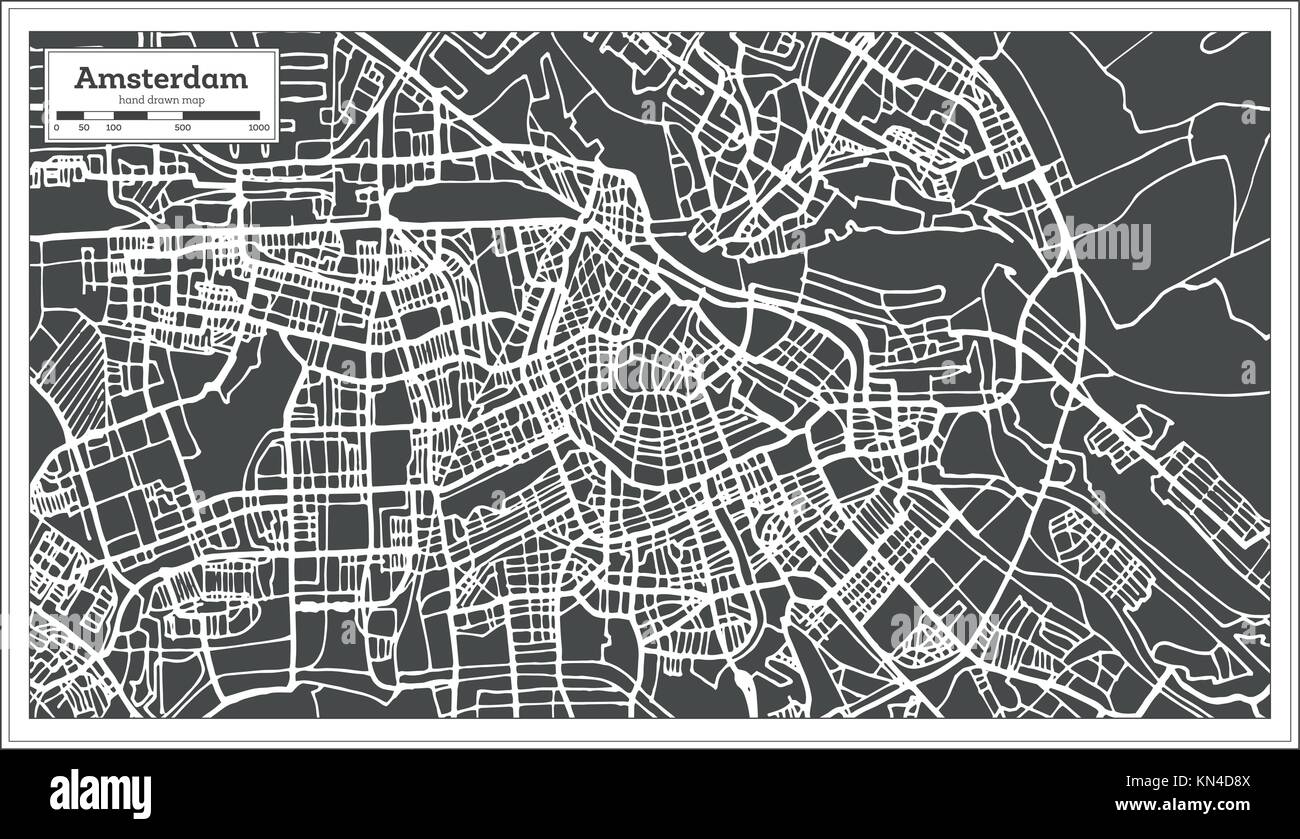 Amsterdam Holland Map In Retro Style Vector Illustration Outline
