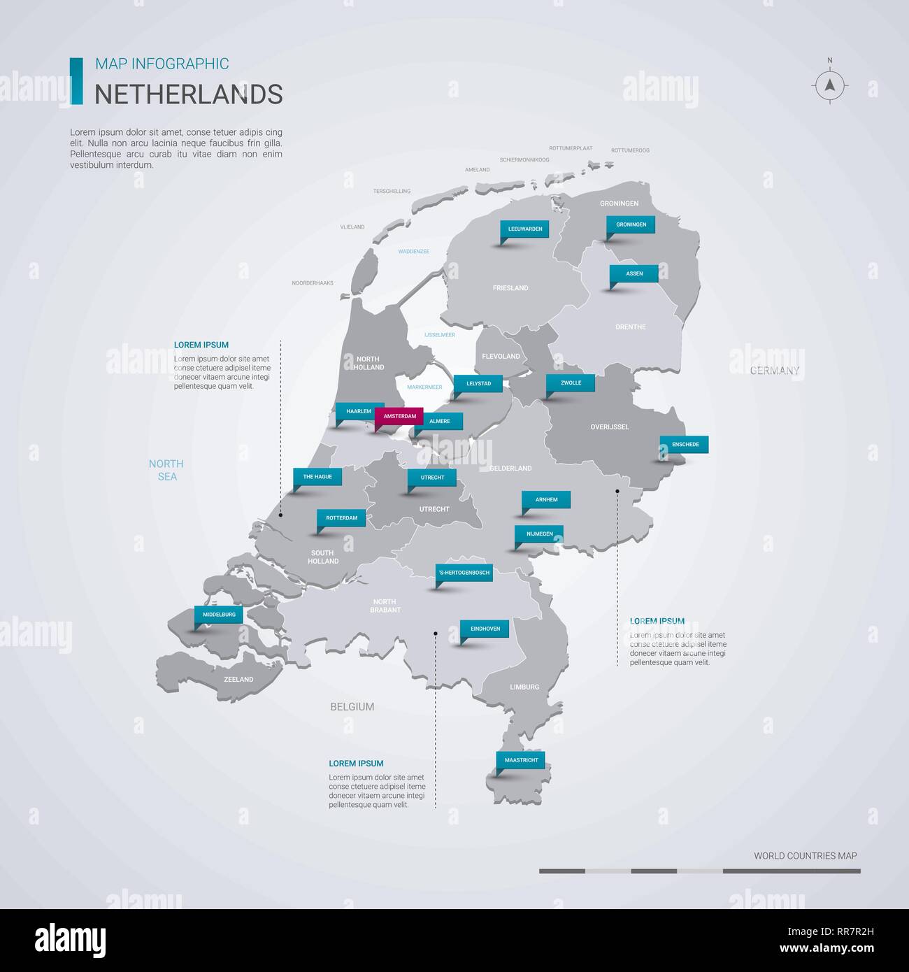 Netherlands Vector Map With Infographic Elements Pointer Marks