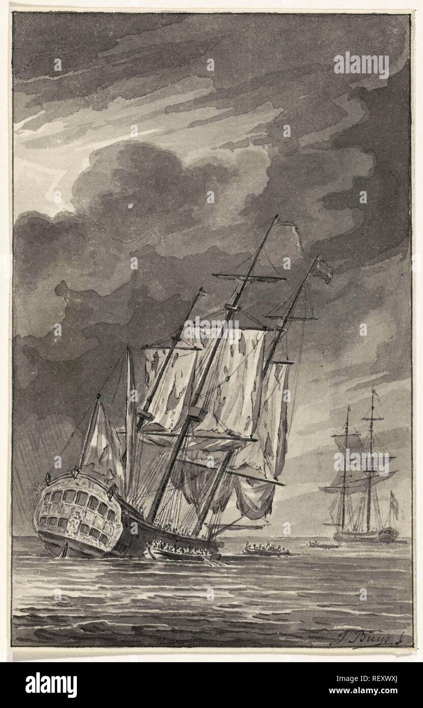 The Sinking Ship Holland 1781 Draughtsman Jacobus Buys Signed
