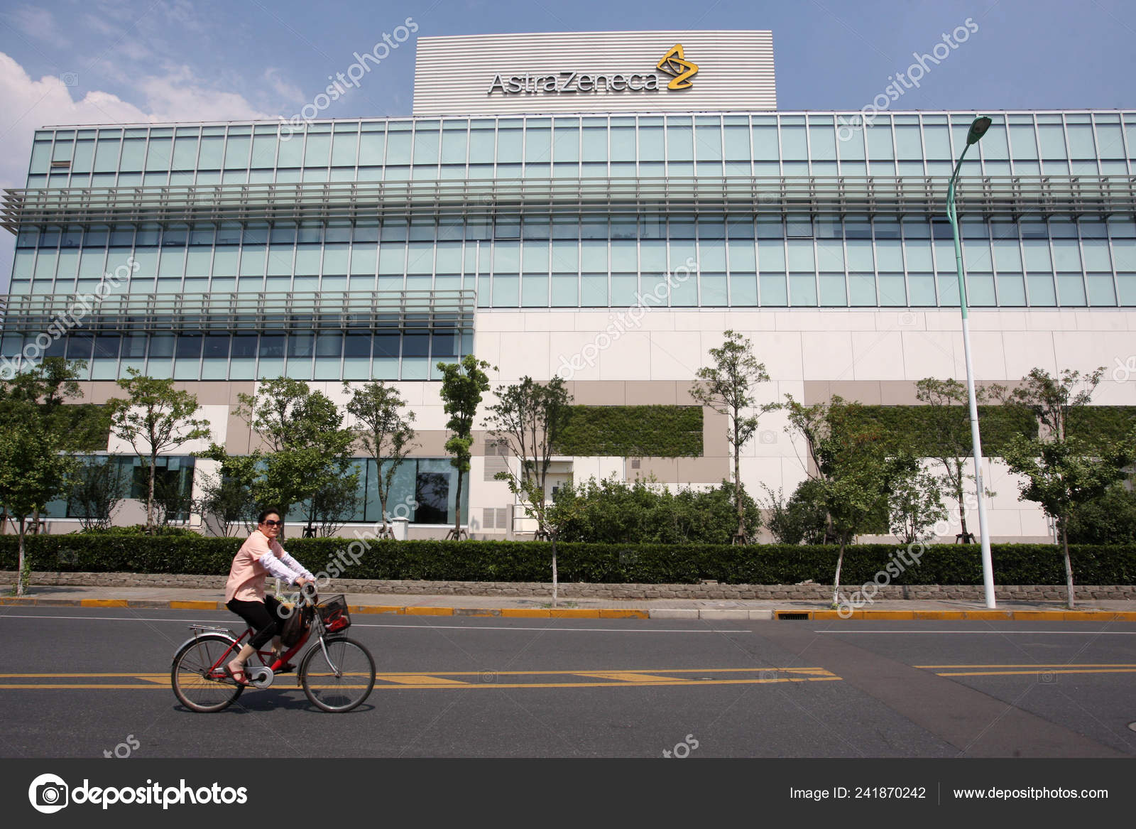 Woman Cycles China Headquarters Astrazeneca Pudong Shanghai China