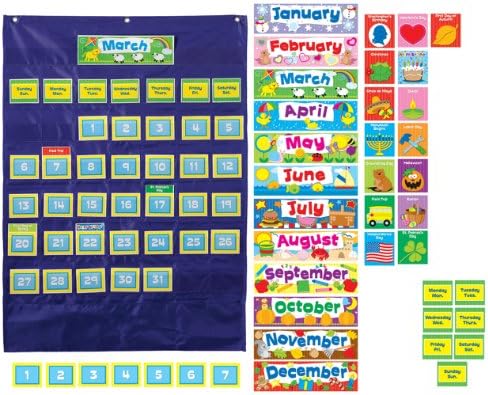 Amazon Com Classroom Calendar Pocket Chart Cards Numbers Days