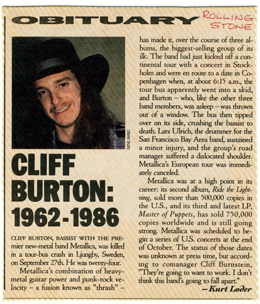 Metallica Bassist Cliff Burton Dies In Tour Bus Accident Aged 24