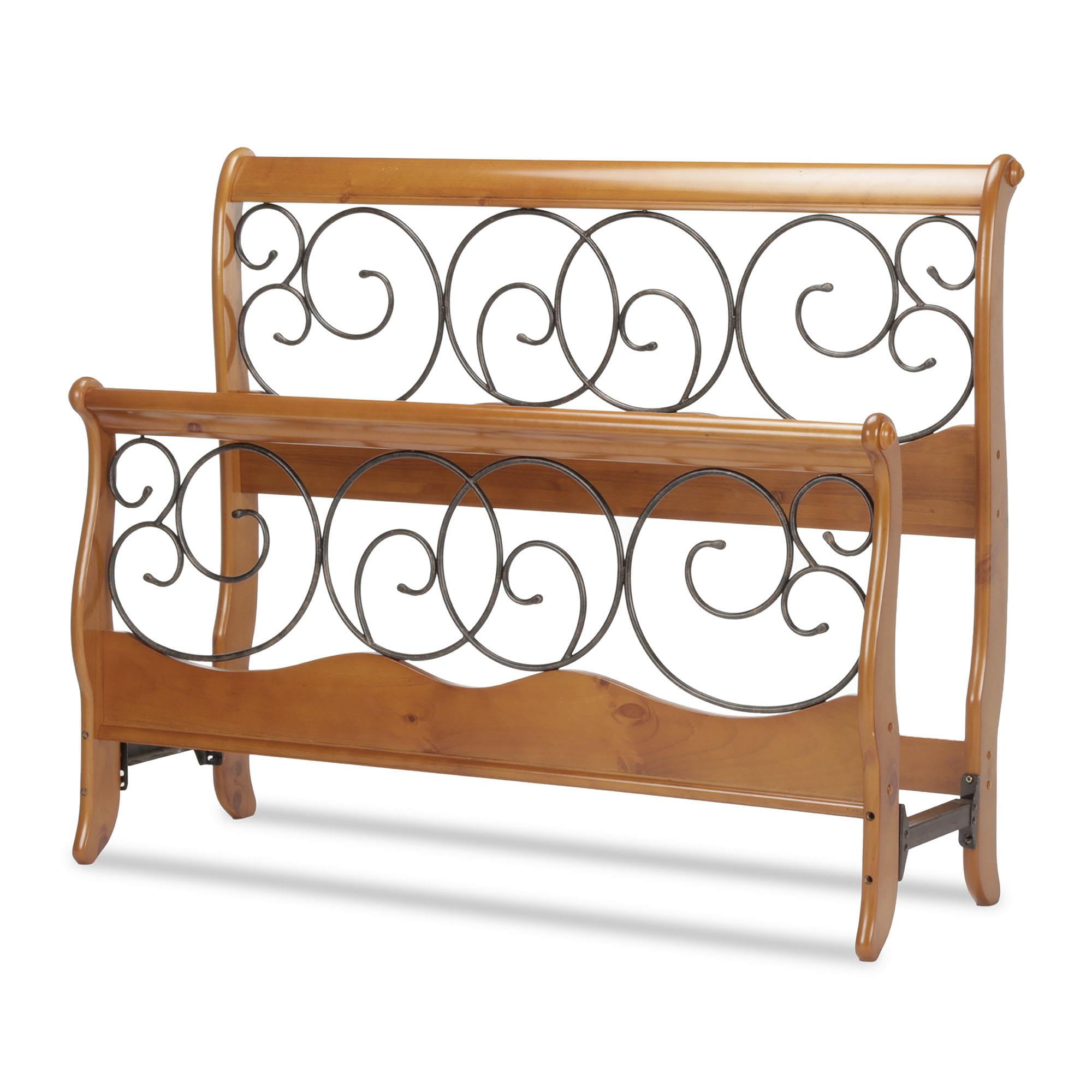 Dunhill Bed With Wood Sleigh Style Frame And Autumn Brown Metal Swirling Scrolls Honey Oak Finish California King Walmart Com Walmart Com