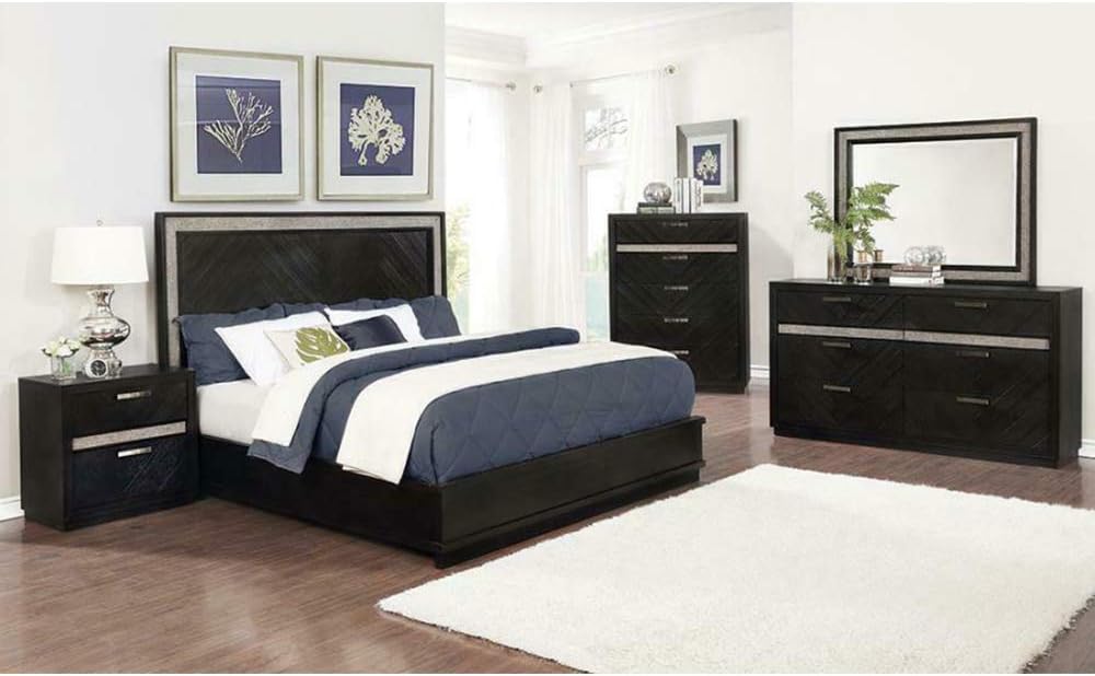 The Deanna Black Velvet And Metallic California King Four Piece Bedroom Set Available At Logan Furniture Serving Dorchester Ma