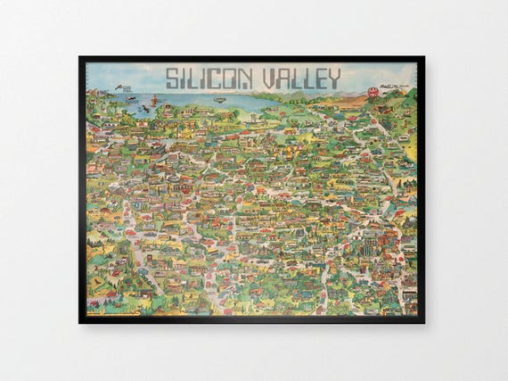 Silicon Valley Map Reproduction Print Of Retro Computing Etsy