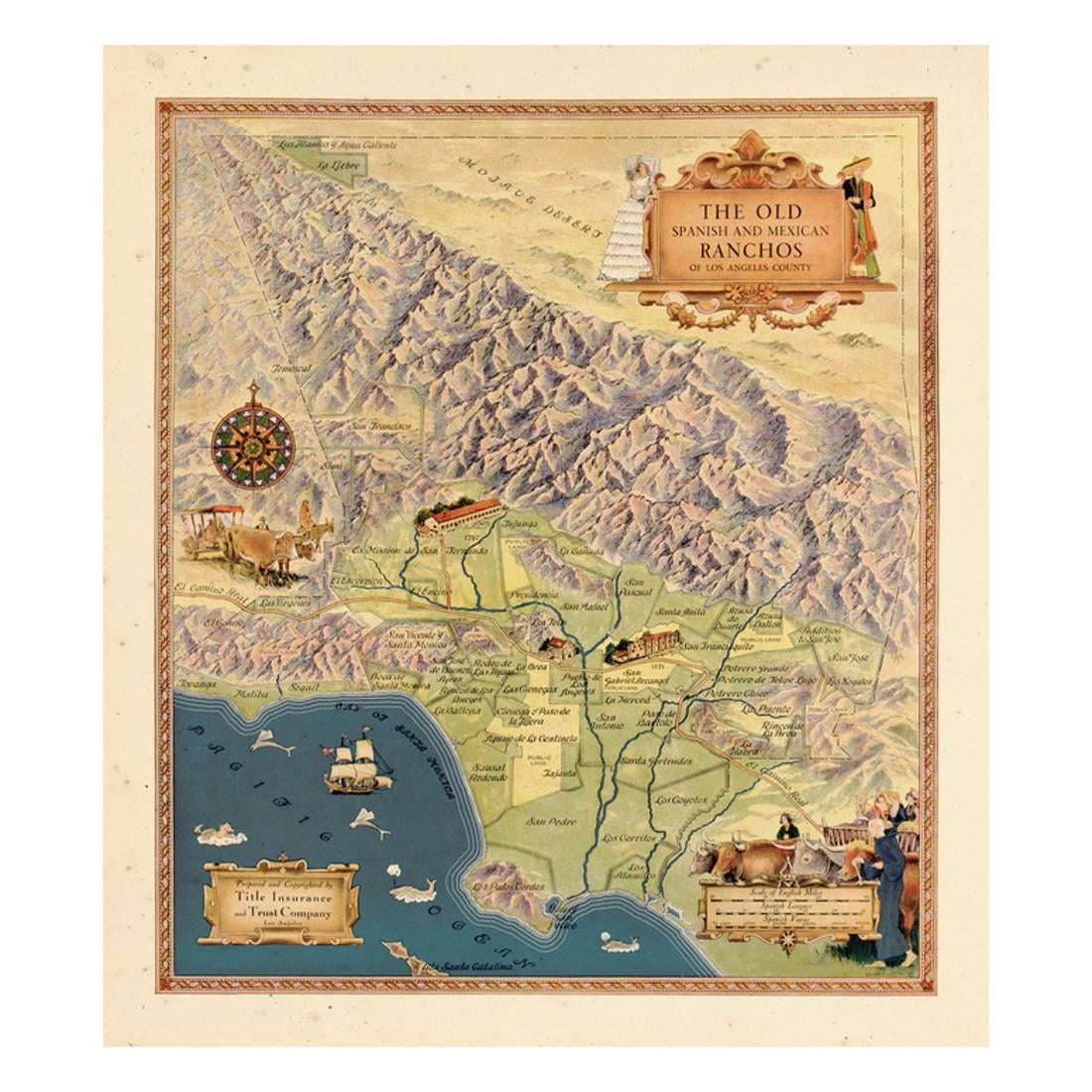 Amazon Com Antiguos Maps Los Angeles County Ranchos California