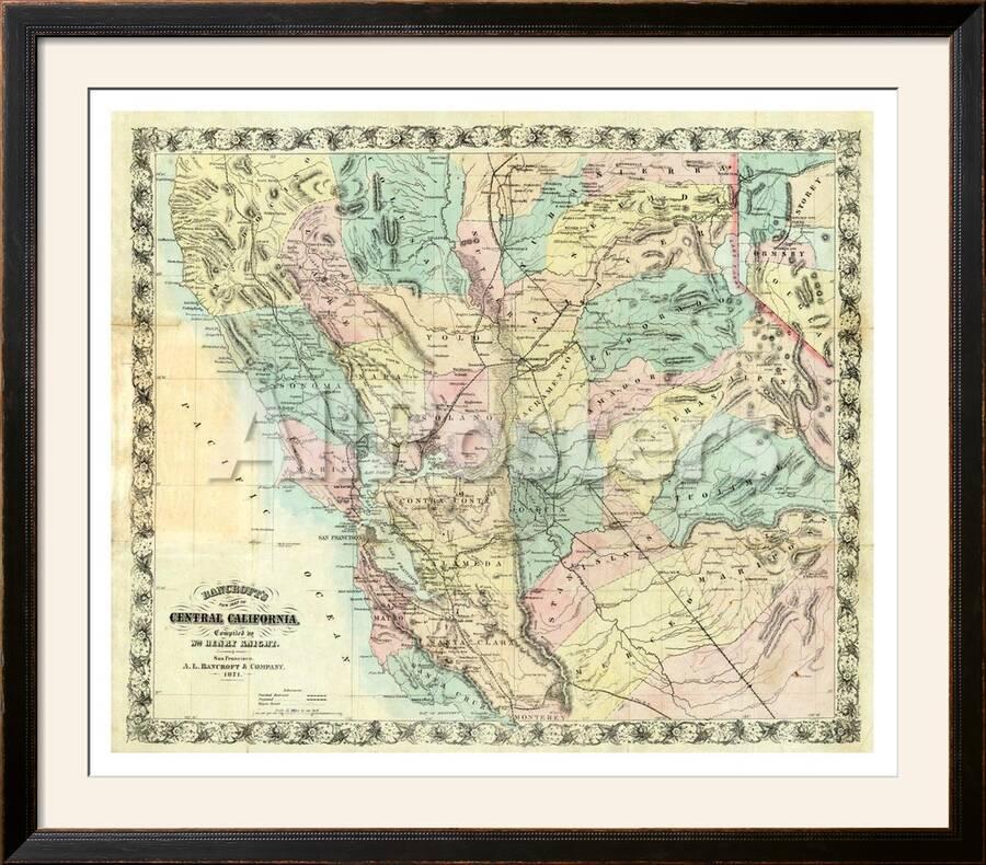 New Map Of Central California C 1871 Framed Giclee Print A L