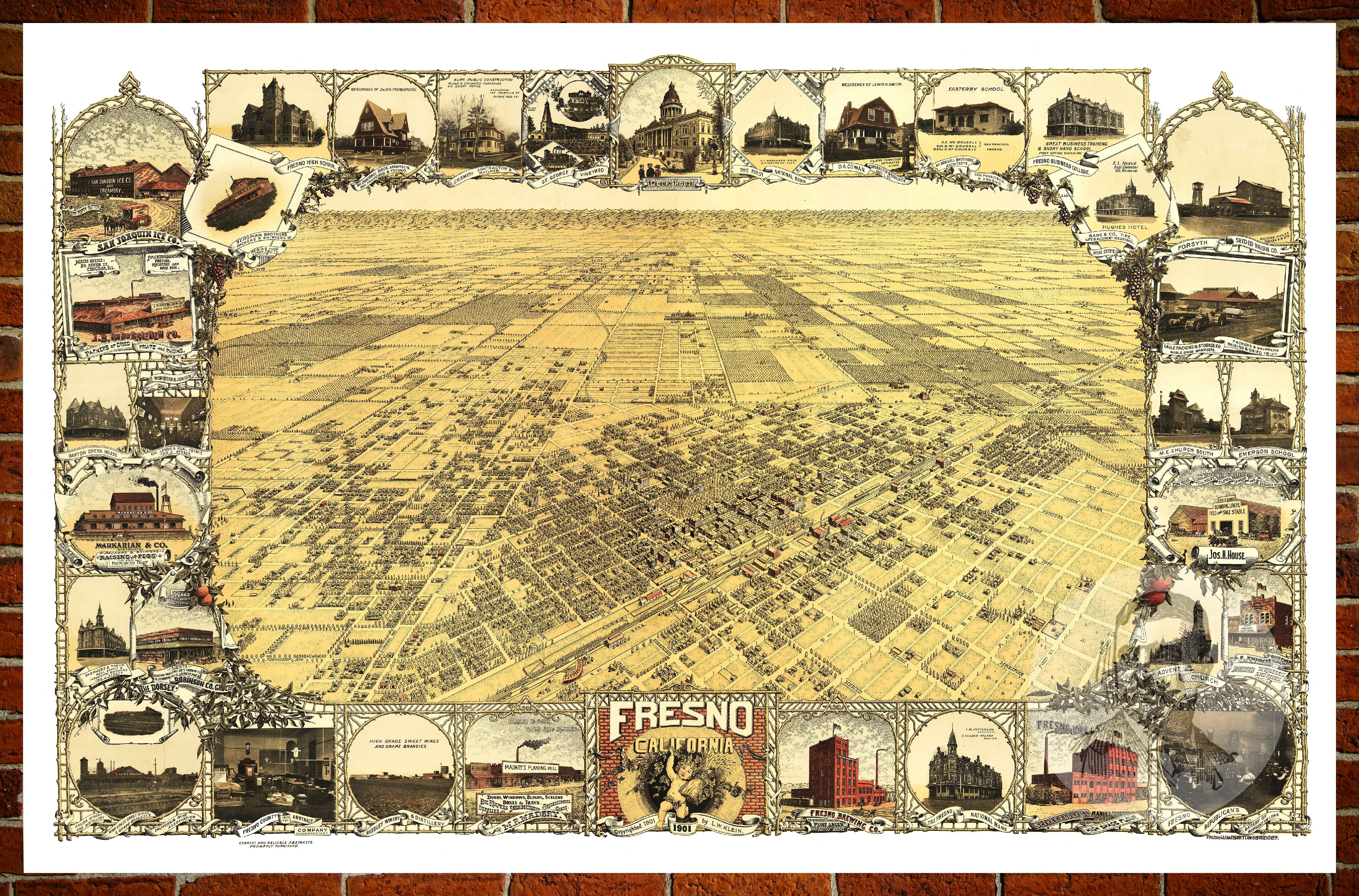 Ted S Vintage Art Map Of Fresno Ca 1901 Old California Decor 18