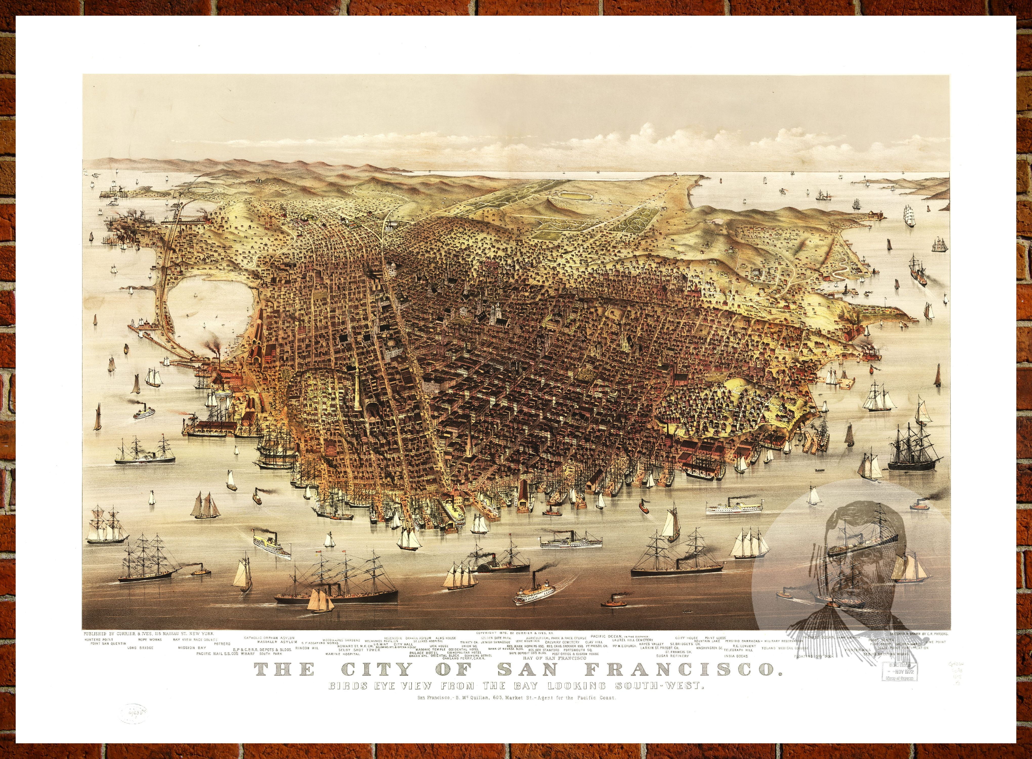 Ted S Vintage Art Map Of San Francisco Ca 1878 Old California