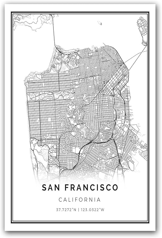 San Francisco Map Poster Print Wall Art California Gift Printable