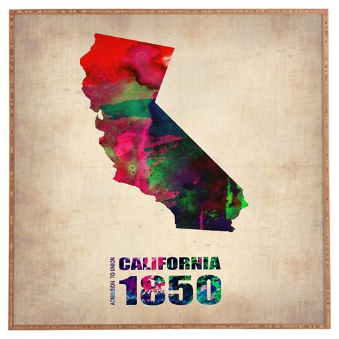 Naxart California Watercolor Map Framed Wall Art Deny Designs