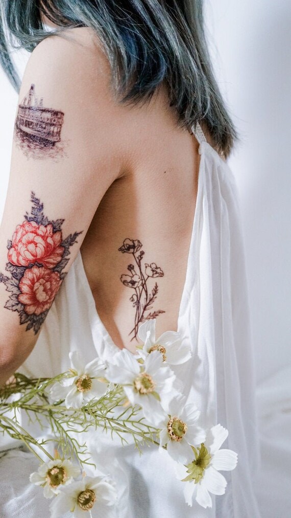 Minimal Flower Tattoos Floral Tattoos Tatouage Temporaire Red Etsy