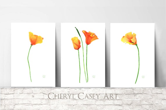 California Poppies Set Of 3 Art Prints From Watercolor Etsy