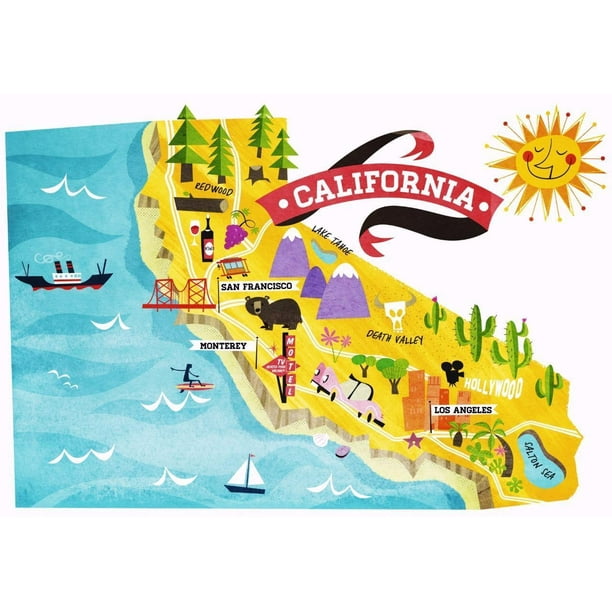 Laminated Poster Cool Fun California State Map Tourism La Poster