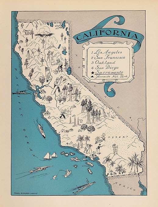 Amazon Com Plaindealing Animated California State Map 1930s Blue