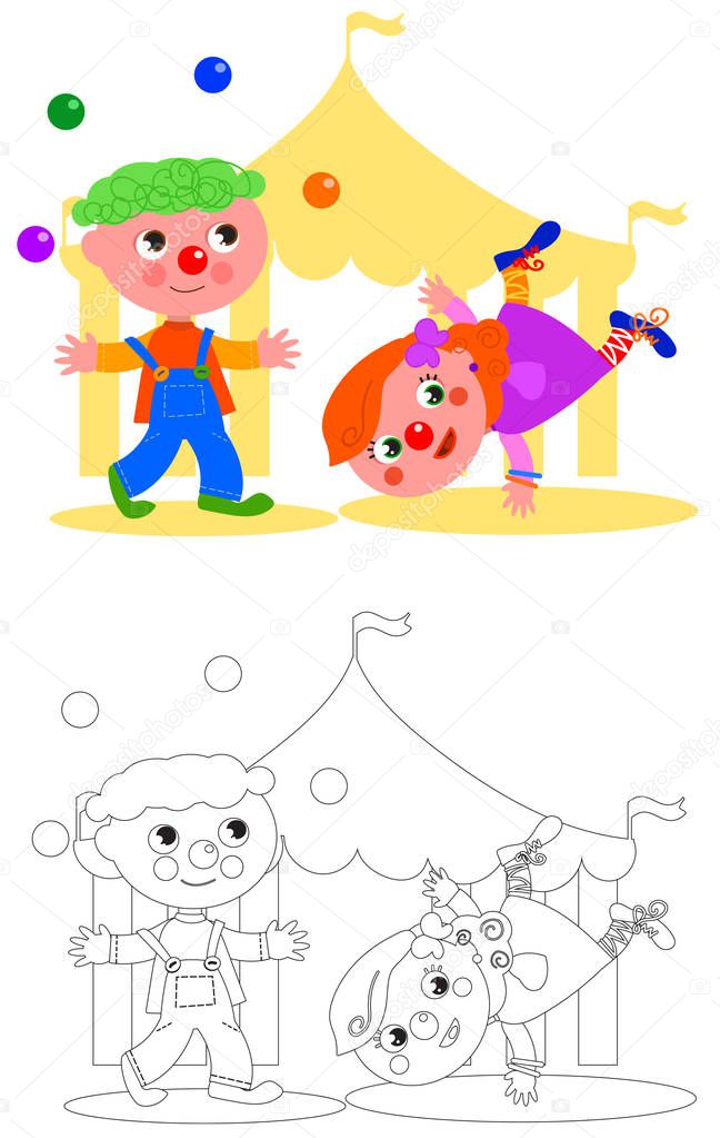 Two Funny Colorfull Clowns Cartoon Characters Illustration Vector