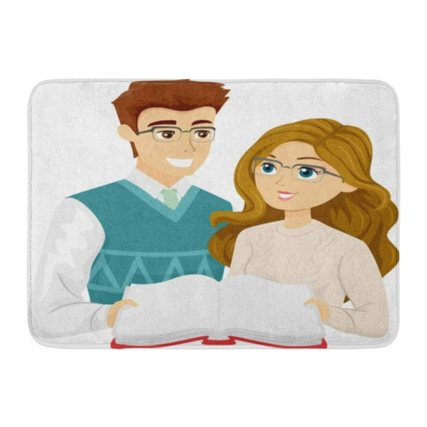 Godpok Clip Cartoon Of Young Teenage Couple In Glasses Reading