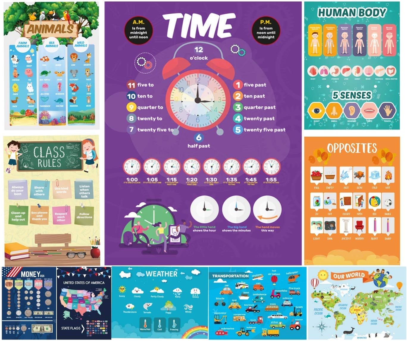 Amazon Com 10 Large Educational Posters For Kids Preschool
