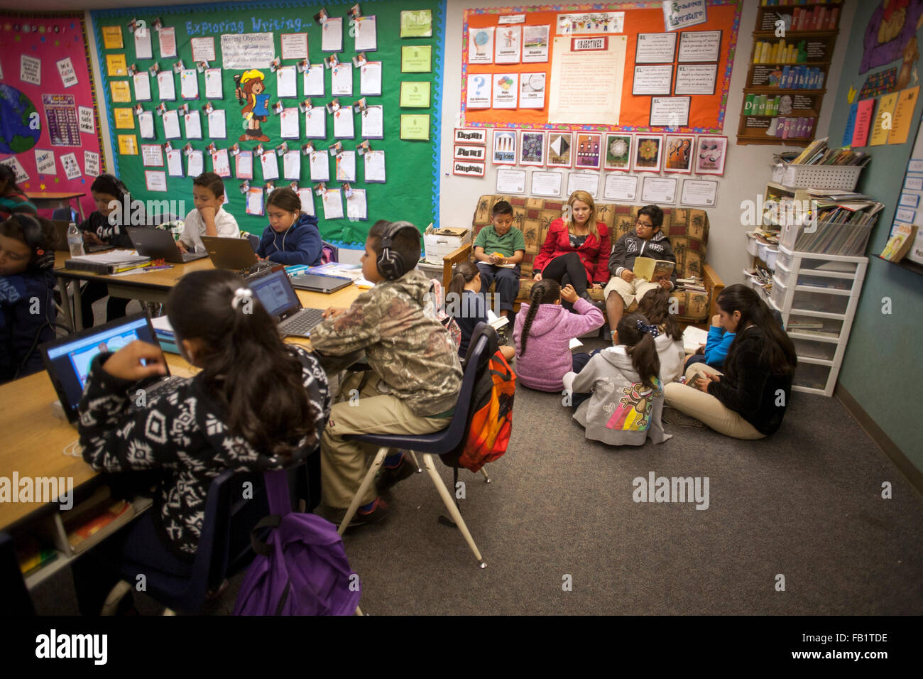 An Elementary School Teacher Holds A Reading Seminar For Her Hispanic Stock Photo Alamy