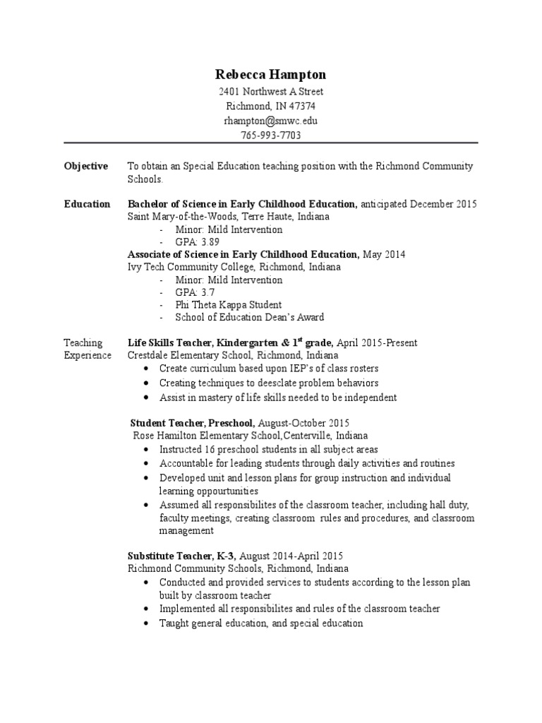 Resume 2 Preschool Teachers Free 30 Day Trial Scribd