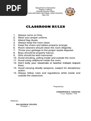 Classroom Rules List Of Instructional Materials Mam Connie Tawatao