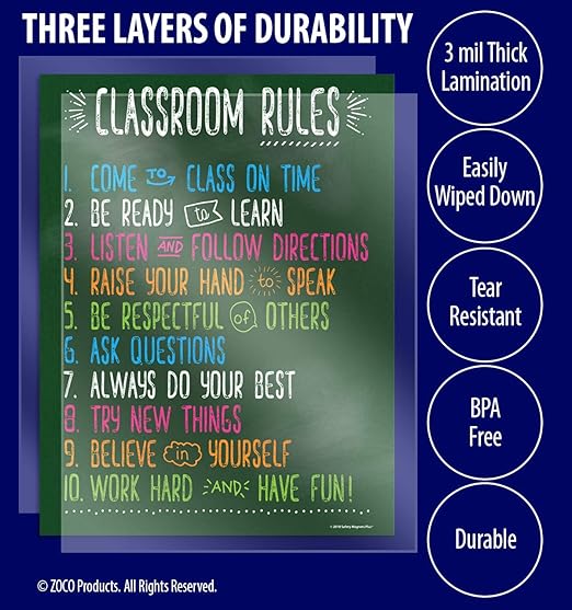 Amazon Com Classroom Rules Poster Laminated 18x24 Motivational