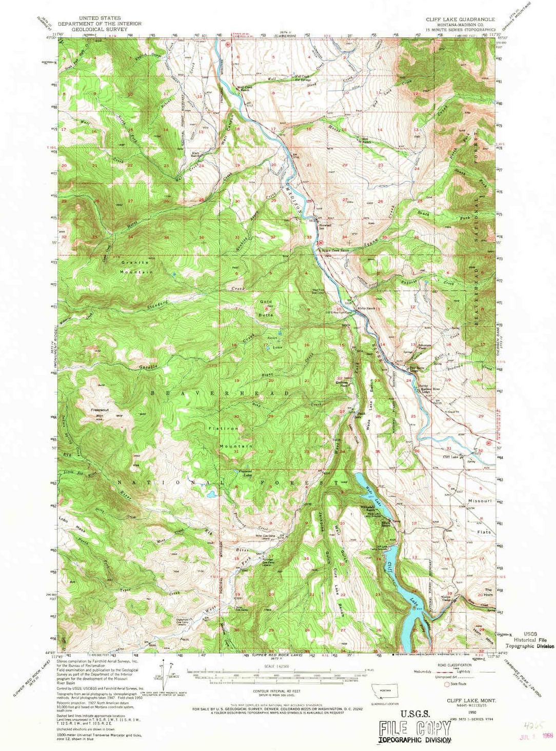 Cliff Lake Montana 1953 Original Vintage Usgs Topo Map Ebay