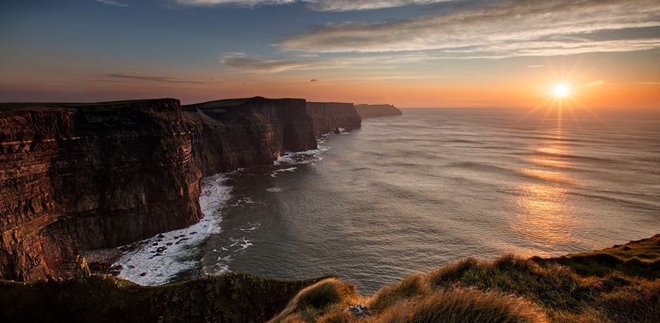 Download Wallpaper 1920x1080 Cliffs Of Moher Ireland Atlantic Ocean Cliffs Sunset Water Surface Ocean Coast