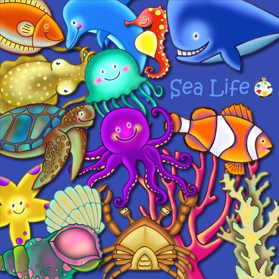 Underwater Sea Life Clipart Clown Fish Whale Aquatic Clip Art Etsy