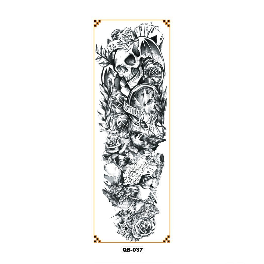 Buy Temporary Big Tattoos Full Arm Skeleton Rose Clock Qb 037