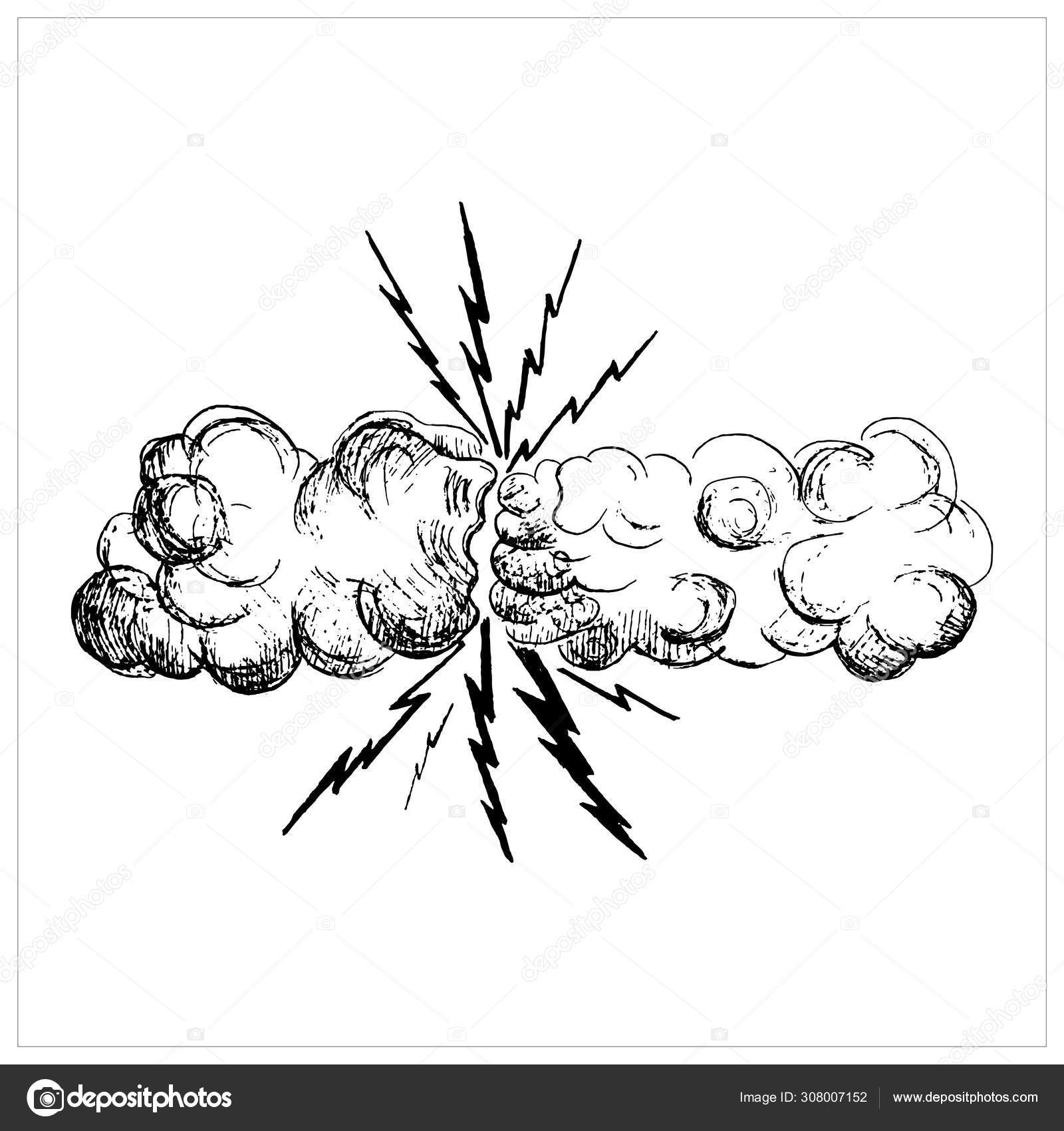 Thunderstorm Vector Vector Sketch Illustration Two Clouds Two