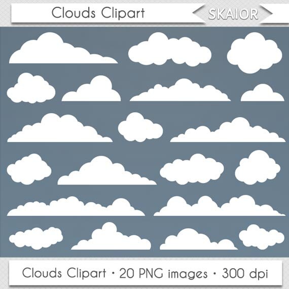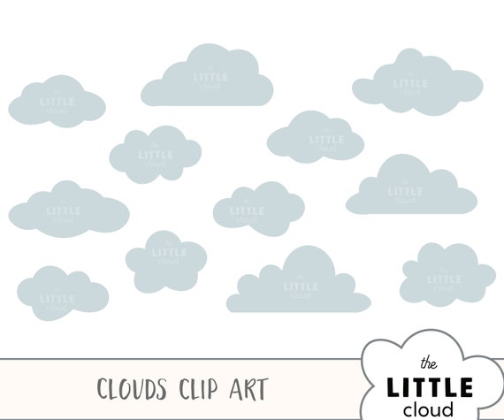 Clouds Clipart Digital Clouds Clip Art Baby Shower Vector Etsy