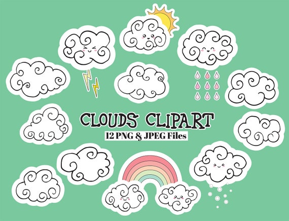 Clouds Clipart Cute Clouds Png Clouds Graphics Clouds Etsy