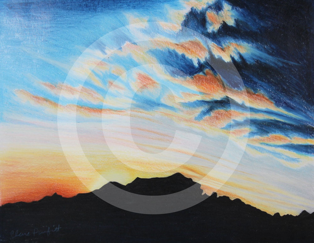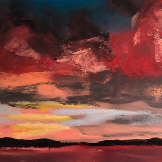 Sunset 3 In Crimson Original Pastel Drawing By Jamies Art Etsy