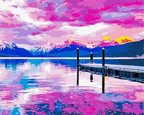 Amazon Com Diy Paint By Numbers Dock Sunset Drawing With Brushes
