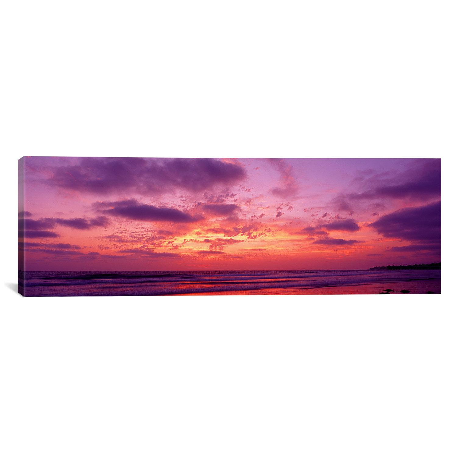 Romantic Pink Purple Cloud Sunset Beach Wrapped Canvas Art Print