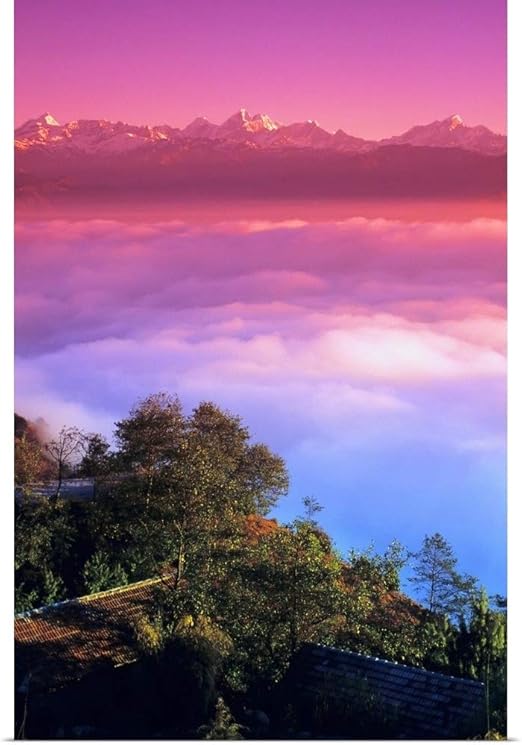 Amazon Com Greatbigcanvas Nepal Nagarkot Village Above Clouds Pink Sunset And Himalayan Mountains In Background Poster Home Kitchen