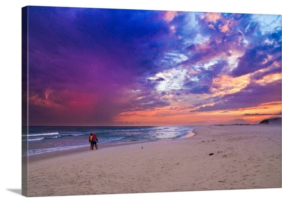 Pink Purple Clouds Sunset Walking Down Beach Wrapped Canvas Art Print Beach Style Prints And Posters By Great Big Canvas