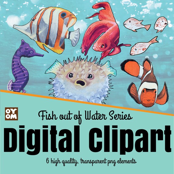Hand Painted Fish Clipart Goldfish Clown Fish Angel Fish Etsy