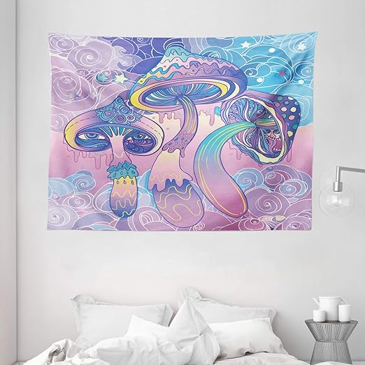 Amazon Com Ambesonne Mushroom Tapestry Trippy Drawing Hippie