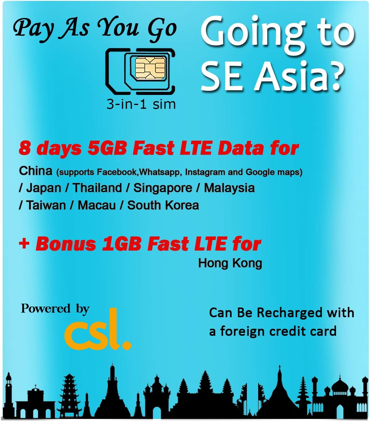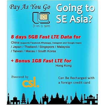 Amazon Com Super Se Asia Roaming Sim By Csl 5gb 1gb Hong Kong