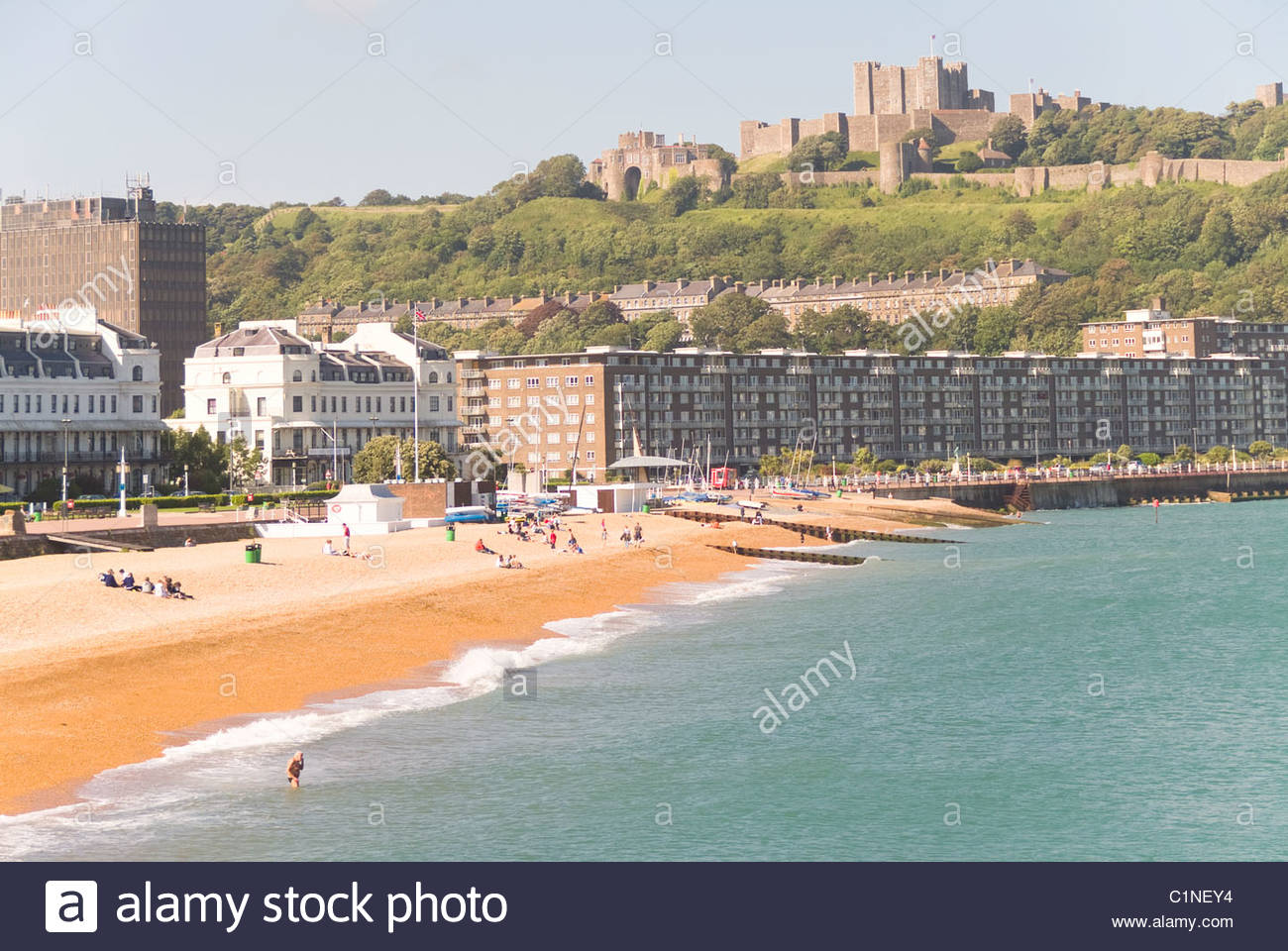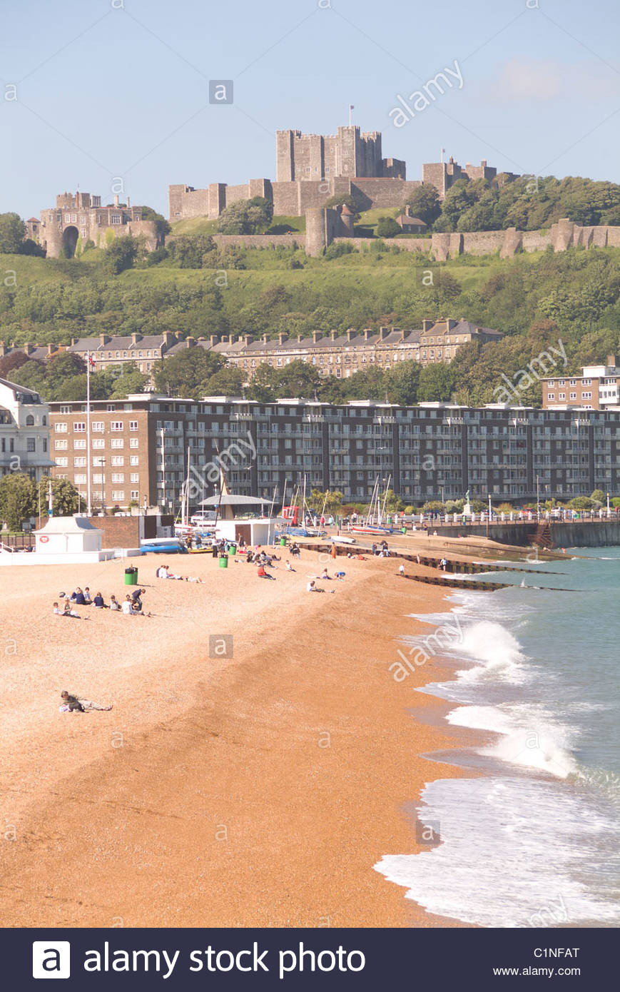The Beach In Dover With Dover Castle Overlooking White Cliffs Of