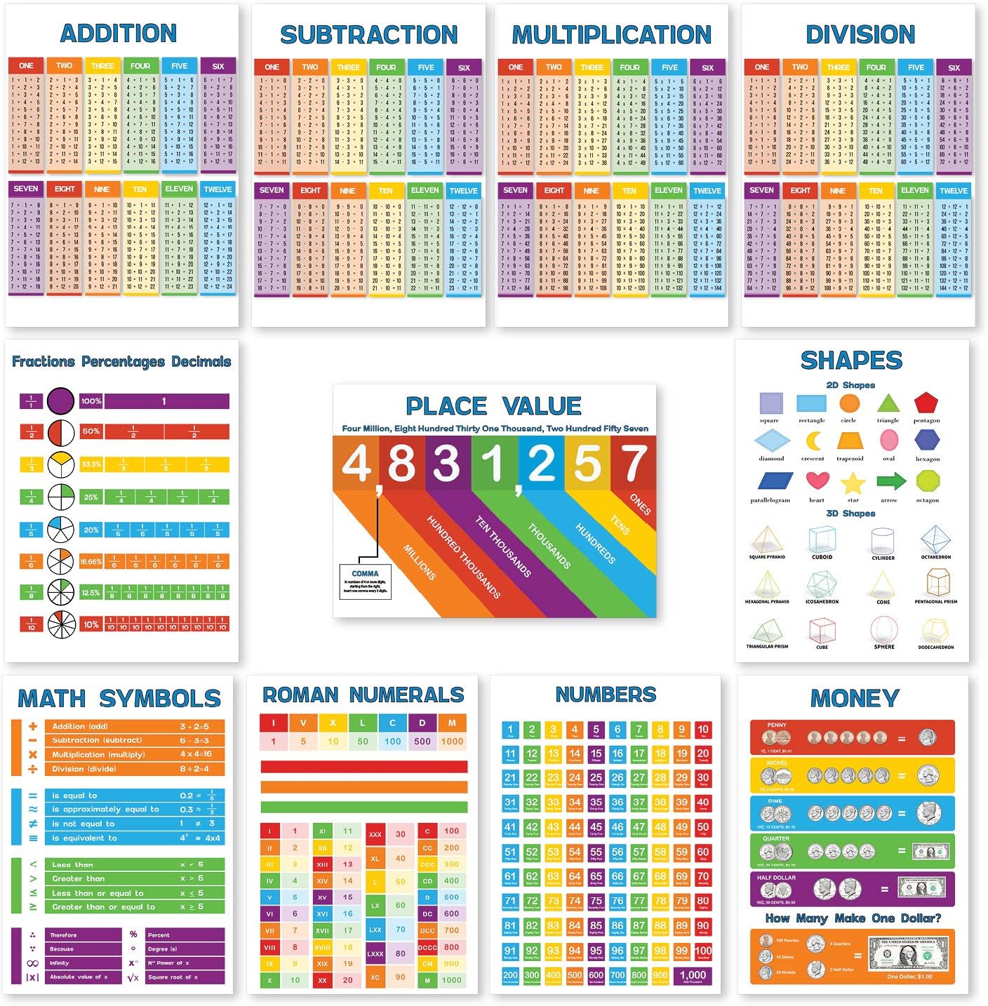 Amazon Com Blulu 12 Pieces Educational Math Posters For Kids