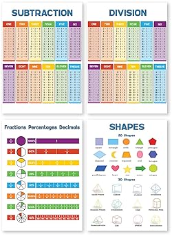 Amazon Com Laminated Educational Math Posters For Kids 4 Large