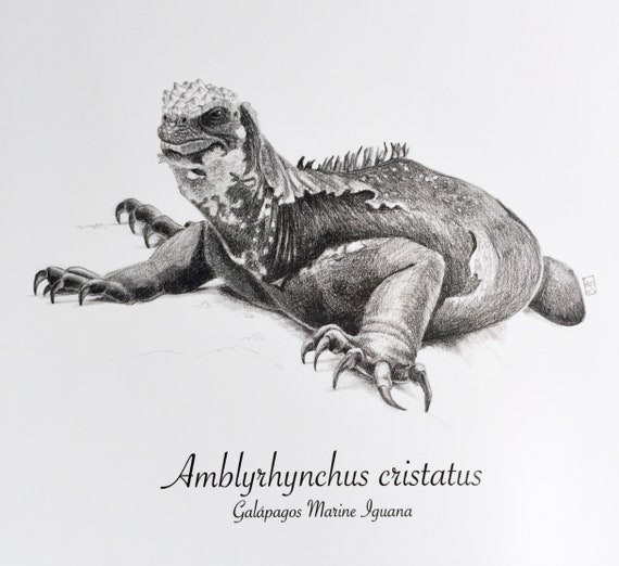 Galapagos Marine Iguana Art Print Reptile 8x10 Etsy