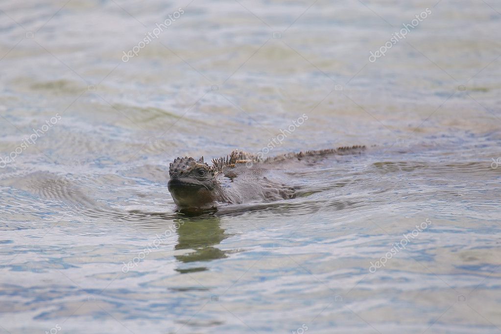 Galapagos Marine Iguana Swimming Amblyrhynchus Cristatus