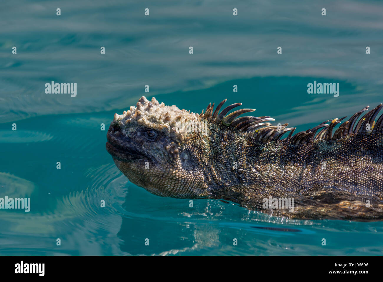 A Marine Iguana Amblyrhynchus Cristatus Swimming On The Surface